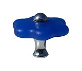 Metal stem with a polished chrome plating.Petals made from a hard blue plastic resin..Made by Swish renowned for quality..Fixing screws supplied..Funky Flower shaped cabinet knobs.. 1 x Brand new blue flower cupboard cabinet knob.The petals of these knobs are made from a very hard plastic resin ,and the stem and centre of the knob from solid metal with a chrome plated finish.They are shaped like a flower with six petals, and are semi translucent blue in colour giving the knobs an almost glass look.These come individually packaged in a clear plastic retail sleeves with fixing screws and are still current live stock in many high street retail outlets.We are offering you these knobs at a fraction of retail price while stocks last.Dimensions :Diameter.....40mm.Diameter of base cap.....10mm.Depth from drawer face.....30mm.Fixing screw length.....27mm.Gross weight.....20g.